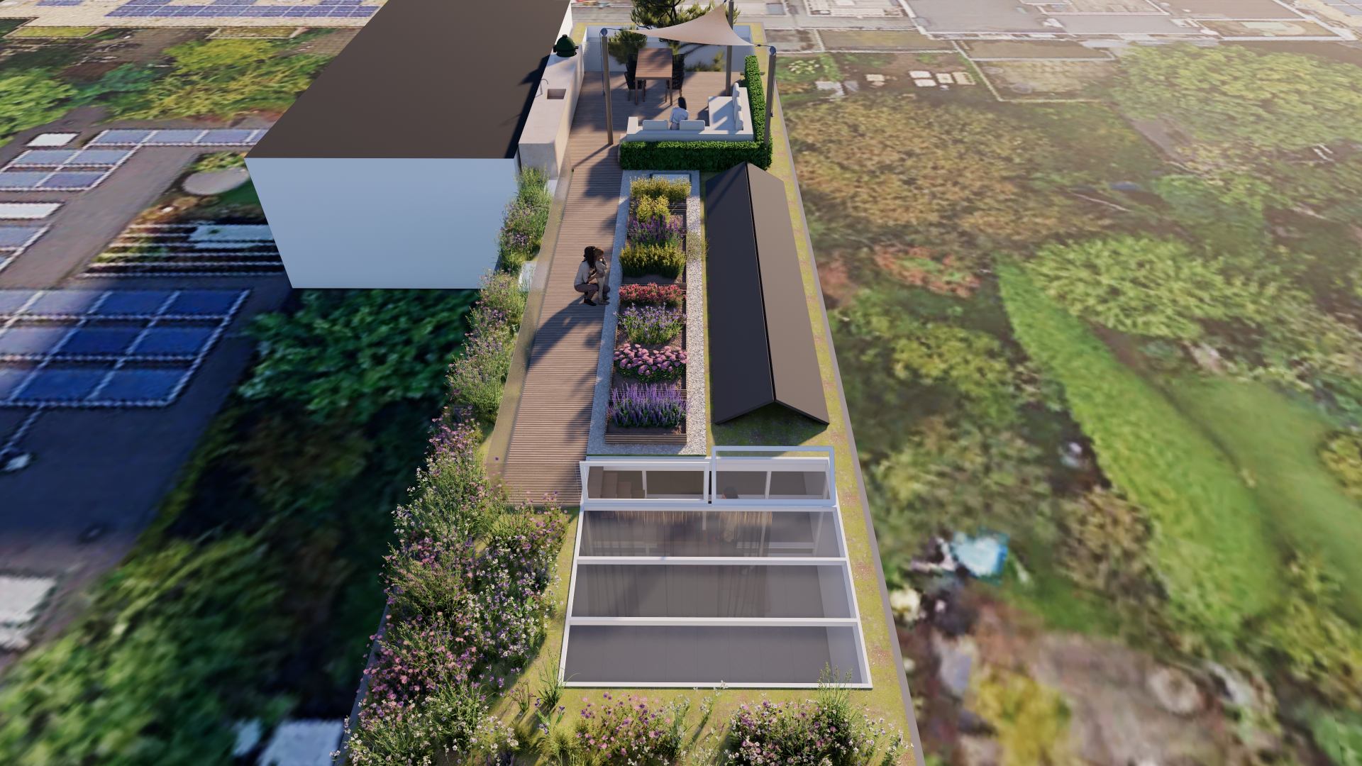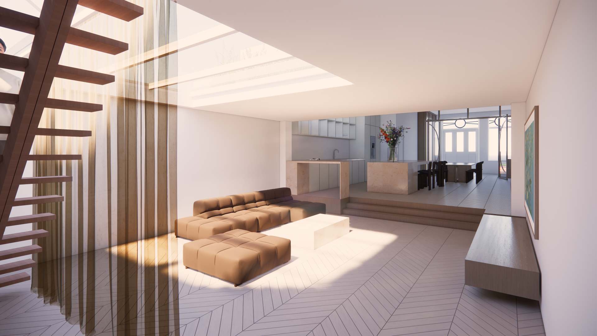 Het ontwerp betreft een appartement op de begane grond in Amsterdam. In het ontwerp wordt de indeling geoptimaliseerd: de hal met openslaande deuren leidt vanaf de voordeur naar de woning en bevat een garderobekast. In het hart van de plattegrond is de ruime leefkeuken opnieuw gepositioneerd. In de bestaande aanbouw wordt de patio voorzien van een daklicht en bij de woonkamer betrokken. Hierdoor ontstaat een ruimere en lichtere leefruimte.